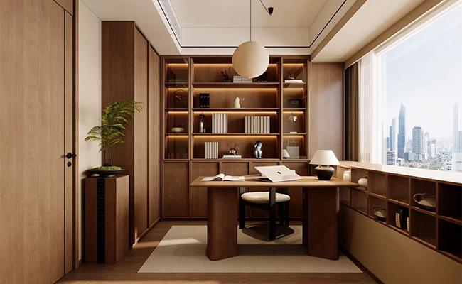 以 “復(fù)合功能的靜謐場域” 為核心,將臥室、收納、輕辦公需求整合于一體:通頂柜體以淺棕 + 柔灰的低飽和色調(diào),消弭空間壓迫感;嵌入的書桌與開放格,既滿足日常辦公,又能陳列私藏好物,讓功能與情感需求共存。窗邊卡座借自然光營造松弛角落,玻璃隔斷則在隱藏衣帽間的同時,保持空間通透。設(shè)計以 “隱形式整合” 為思路,在有限尺度里,用柔和材質(zhì)與功能分區(qū),讓臥室成為兼具休憩、收納與輕社交的靜謐私域。
