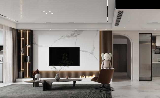 打通客餐廚界限,拓寬視覺尺度。以淺灰為主色調(diào),搭配原木飾面與金屬細(xì)邊,弱化硬裝棱角。 定制嵌入式收納系統(tǒng)化解小戶型儲(chǔ)物難題,軟裝選用低飽和色塊點(diǎn)綴,兼顧美學(xué)與實(shí)用性,打造簡(jiǎn)約舒適的現(xiàn)代宜居空間。